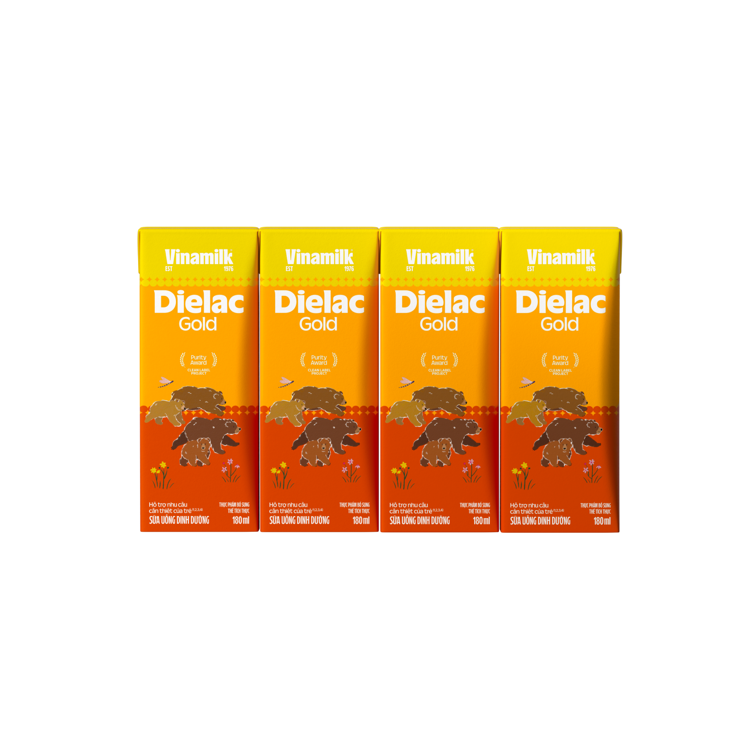 MÔ TẢ SẢN PHẨM Quy cách thùng: 12 lốc/ thùng   Tên sản phẩm: Thực phẩm bổ sung Sữa uống dinh dưỡng (Sữa bột pha sẵn) Dielac Alpha Gold - Lốc 4 hộp x 180ml   Dielac Alpha Gold đặc chế hỗ trợ phát triển trí não với công thức Opti-Grow IQ là sản phẩm ứng dụng thành công Lutein từ nghiên cứu của tập đoàn dinh dưỡng DSM, Thụy Sĩ, được bổ sung Lutein với hàm lượng DHA tăng gấp đôi cùng các dưỡng chất thiết yếu khác như ARA, Cholin, Omega 3, Omega 6 theo các tiêu chuẩn quốc tế: • Hàm lượng DHA đáp ứng 100% theo khuyến nghị của WHO/FAO: áp dụng cho Step 1, 2 • 3 ly mỗi ngày + bữa ăn thường ngày của bé đáp ứng 100% hàm lượng DHA tiêu chuẩn AFSSA của Pháp: áp dụng cho Step 3, 4, 5 • Đáp ứng 100% tiêu chuẩn quốc tế CODEX về vệ sinh thực phẩm với hàm lượng thành phần dinh dưỡng của sữa bột công thức Dielac Alpha Gold, Sữa bột pha sẵn, với công thức Opti-Grow IQ hỗ trợ:   •  PHÁT TRIỂN TRÍ NÃO: Các thành phần Axít Alpha-linolenic, Axit Linoleic, Taurin, Cholin, Sắt, DHA & ARA kết hợp với Lutein trong Dielac Alpha Gold bổ sung các dưỡng chất cần thiết cho sự phát triển của não bộ, võng mạc mắt, tăng khả năng nhận thức & ghi nhớ của trẻ.     •  TĂNG CƯỜNG SỨC ĐỀ KHÁNG: Dielac Alpha Gold sử dụng Sữa non Colostrum - sữa bò được vắt ra trong 48 giờ đầu sau khi sinh - chứa rất nhiều kháng thể và các vi chất Kẽm, Selen, Vitamin A, D3, C giúp tăng sức đề kháng của trẻ, bảo vệ trẻ luôn khỏe mạnh, chống lại các bệnh nhiễm khuẩn.     •  HỖ TRỢ SỨC KHỎE HỆ TIÊU HÓA: Tỉ lệ đạm Whey:Casein (60:40) cung cấp đầy đủ axit amin thiết yếu và cân đối, giúp hệ tiêu hóa còn non yếu của trẻ hấp thu đạm sữa được tốt nhất. Chất xơ hòa tan Inulin & Oligofructose (FOS), giúp tăng cường hệ vi khuẩn có lợi cho đường ruột, hỗ trợ hệ tiêu hóa khỏe mạnh, giúp nhuận tràng từ đó hấp thu các chất dinh dưỡng tốt hơn.     •  PHÁT TRIỂN THỂ CHẤT - CHIỀU CAO: Tỉ lệ Canxi & Phốt pho (Ca:P) thích hợp cùng với hàm lượng Vitamin D3 và các khoáng chất (Kali, Magiê) cao giúp hệ xương và răng chắc khỏe, trẻ phát triển tốt về chiều cao.   Sản phẩm dành cho trẻ từ 1 tuổi trở lên.   MẪU BAO BÌ THAY ĐỔI THEO TỪNG ĐỢT NHẬP HÀNG.