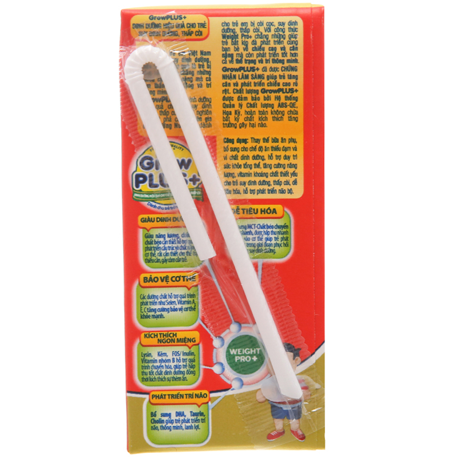- GrowPLUS+ là nghiên cứu đột phá của Chuyên gia dinh dưỡng NutiFood dành cho trẻ em Việt Nam bị còi cọc, suy dinh dưỡng, thấp còi. Với công thức đột phá Weight Pro+ giàu năng lượng, chất đạm, chất béo chuyển hóa nhanh MCT, Kẽm, Lysin, Vitamin nhóm B, Nucleotides, Selen, Vitamin A, E, C, Cholin, Taurin, Canxi, Phốt pho,… giúp tăng cường hệ miễn dịch, hệ xương răng chắc khỏe, phát triển chiều cao, giúp ăn ngon miệng hơn, phát triển trí não và thị lực của trẻ.