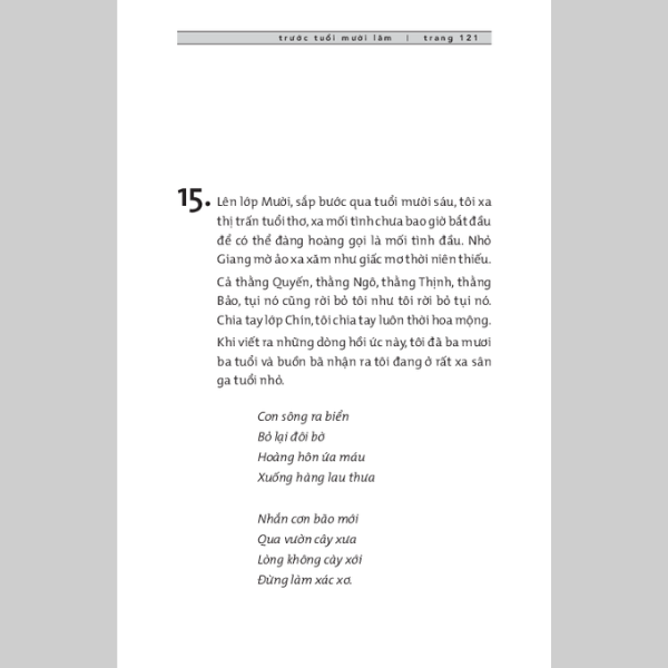 Nhưng tràn ngập gần 300 trang sách là ký ức về tuổi trưởng thành ngày ấy ở vùng quê miền Trung. Quá khứ và hiện tại mang màu sắc vui buồn trái ngược, khiến cuốn sách có một hấp dẫn khác biệt.