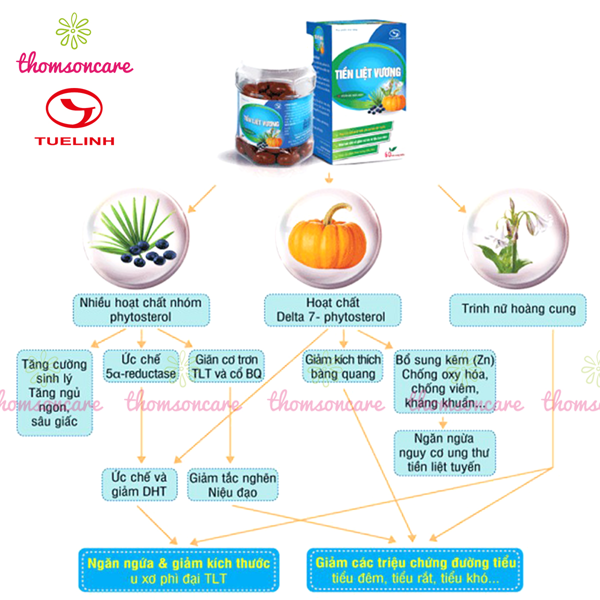 Viên uống giảm tiểu đêm, tiểu buốt từ thảo dược - Tiền liệt vương Tuệ Linh Với phương châm “Vì sự hài lòng của Quý khách” - Thomsoncare luôn đồng hành cùng bạn "Chăm sóc