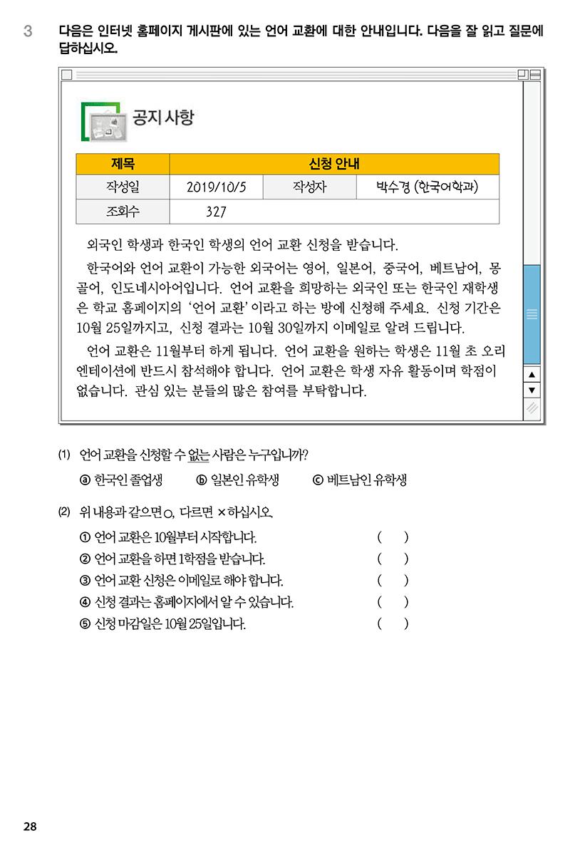 • Luyện viết: Gồm các dạng bài : dịch từ tiếng Việt sang tiếng Hàn, điền từ vào chỗ trống và bài viết nâng cao