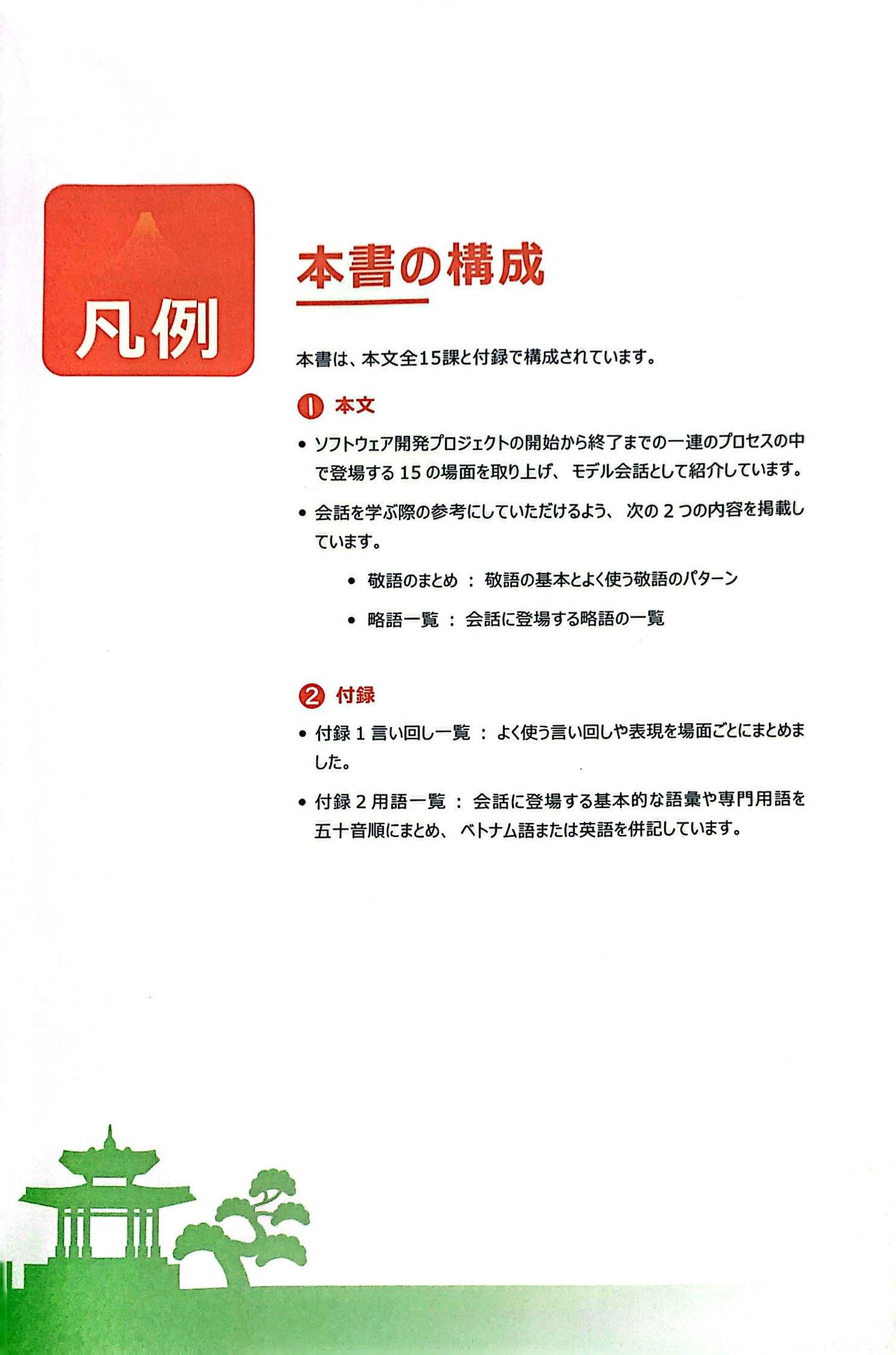 Hiện nay, mối quan hệ giữa Việt Nam và Nhật Bản đang phát triển nhanh chóng về mọi mặt, đặc biệt là trên lĩnh vực công nghệ thông tin. Cùng với đó, nhu cầu nhân lực biết tiếng Nhật cũng đang rất cấp bách. Đáp ứng nhu cầu đó, tiếp nối sự ra đời của cuốn sách “Tiếng Nhật công nghệ thông tin trong ngành phần mềm”, chúng tôi biên soạn cuốn “Tiếng Nhật công nghệ thông tin: Hội thoại trong dự án phần mềm” này dành cho đối tượng có trình độ tiếng Nhật tương đương N3 với các chủ đề phong phú, dễ nhớ và dễ áp dụng vào dự án thực tế.