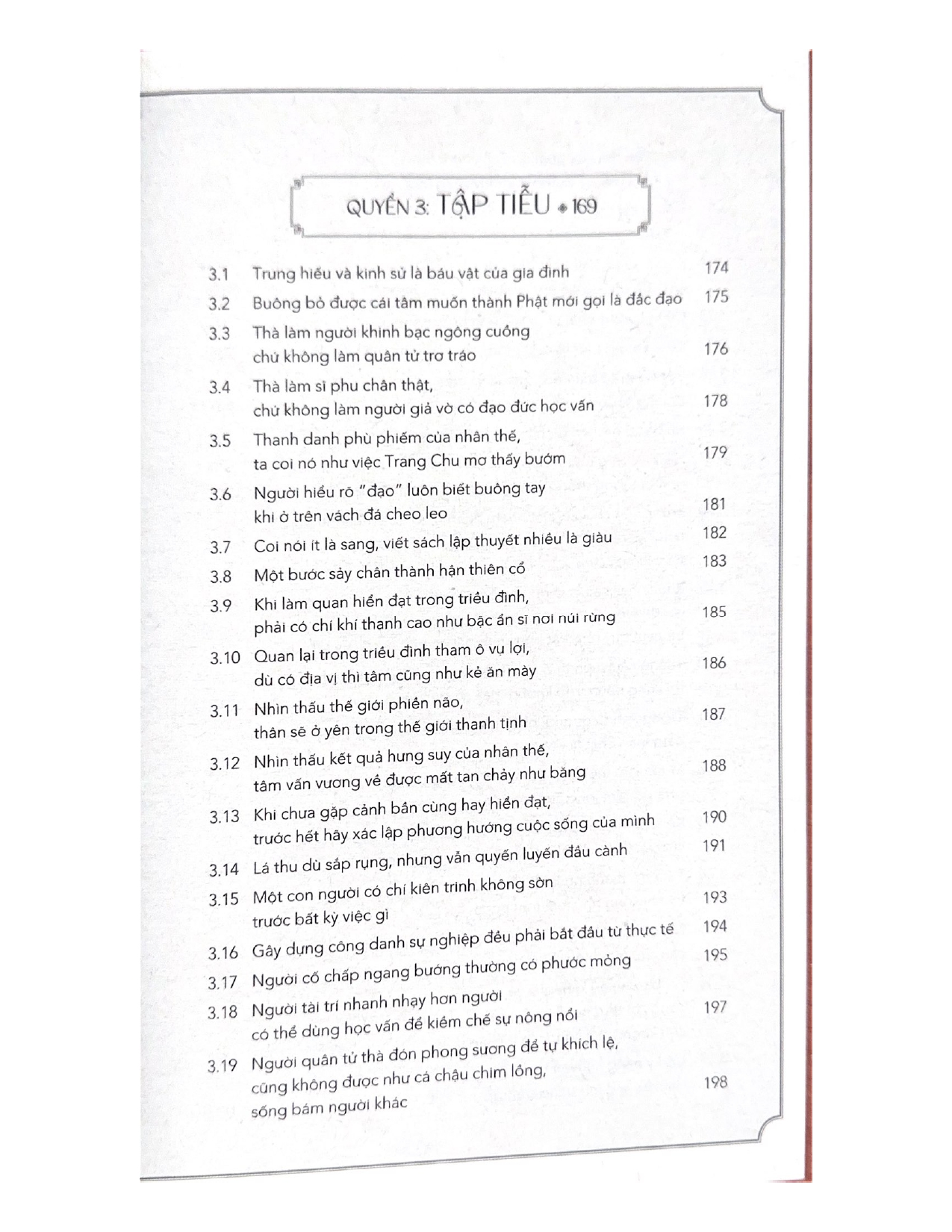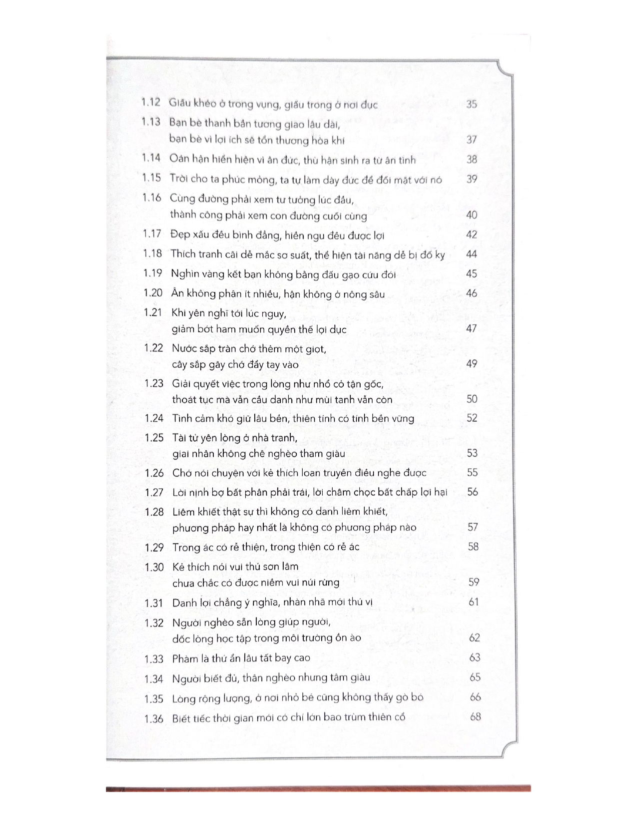 Cuốn sách này chọn lọc trích dẫn những câu hay nhất trong bốn quyển đầu vốn được coi là giàu trí tuệ triết lý nhân sinh, kèm theo phần chữ Hán để người đọc thấy được vẻ đẹp nguyên thủy của câu văn, cùng phần dịch nghĩa và lời bình, giúp làm sáng tỏ tư tưởng của nguyên văn. Hy vọng cuốn sách sẽ góp phần gạn đục khơi trong, phát huy các giá trị tốt đẹp trong kho tàng cổ học