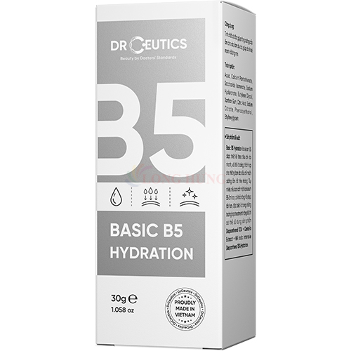Tinh chất DrCeutics Basic B5 HydrationThành phần: Calcium Pantothenate (Vitamin B5): có tác dụng liên kết và giữ nước cho da, từ đó tăng cường khả năng dưỡng ẩm, giúp da mềm mại, mịn màng và đàn hồ...
