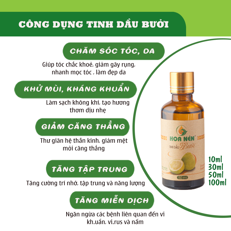 ✨Tinh dầu Bưởi nguyên chất Hoa Nén 100ml - 3ml - Hoa Nén - Chăm sóc tóc, đẹp da, làm thơm phòng