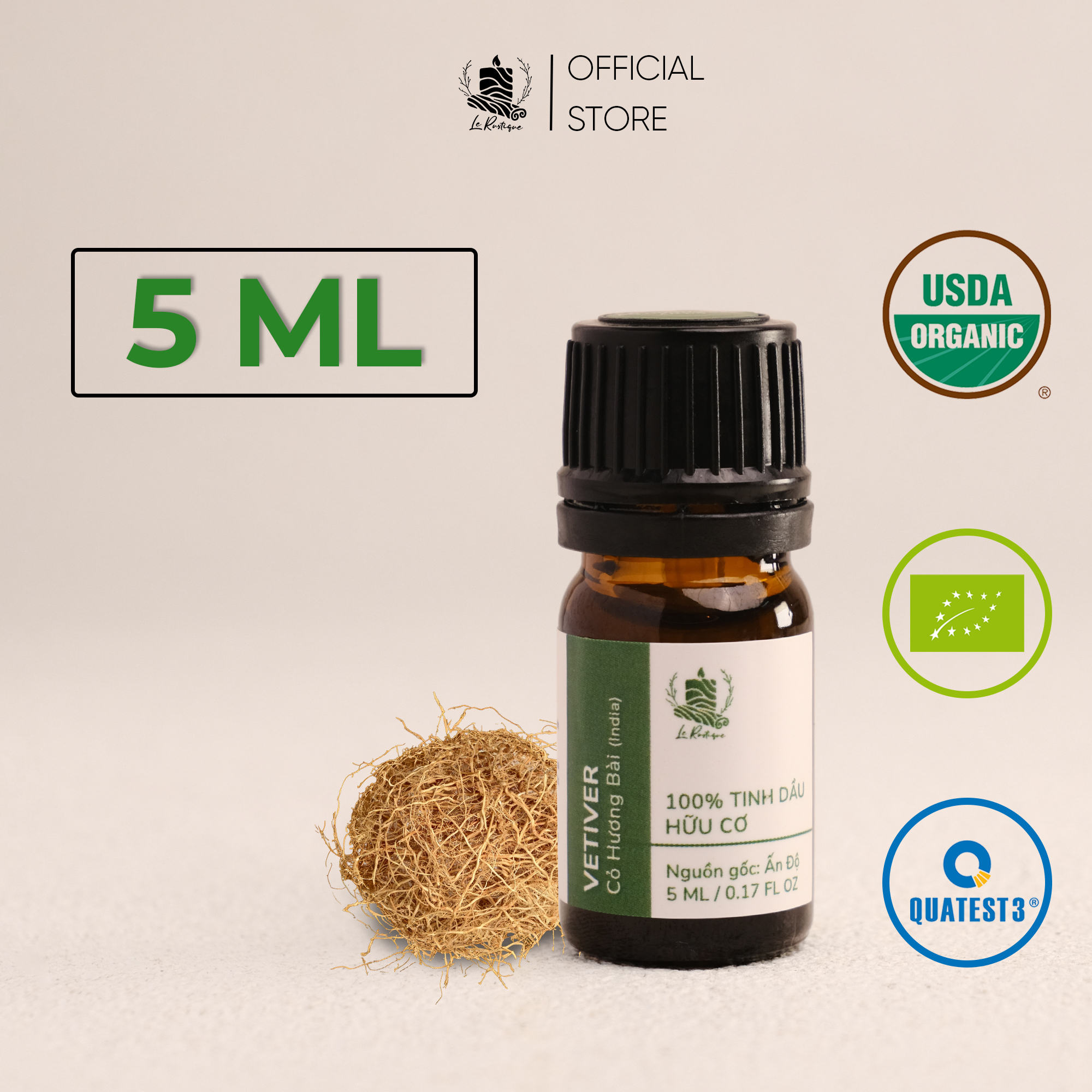 ► Sản phẩm: Tinh Dầu Cỏ Hương Bài (Ấn Độ) - 100% Nguyên Chất Hữu Cơ - Le Rustique - Tinh Dầu Bản Địa Ấn Độ
