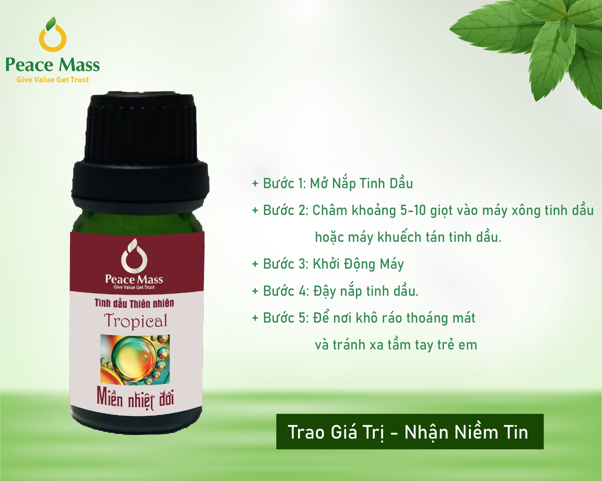 ✨Tinh dầu Miền nhiệt đới Peace Mass dùng cho máy xông 10ml