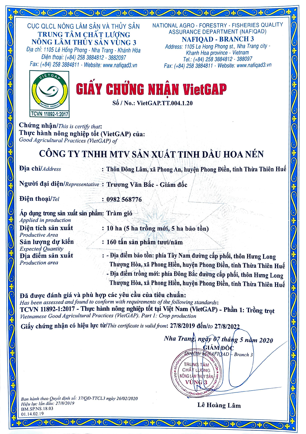 Áp dụng tiêu chuẩn VietGAP cho tinh dầu tràm Huế - Hoa Nén