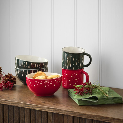 Những chiếc bát có phong cách trang nhã và lễ hội mang tinh thần Giáng sinh đến bàn ăn.