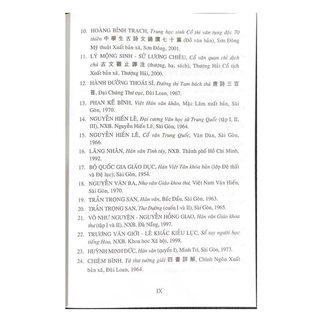 Nâng cao: Gồm 102 bài được tuyển chọn, được viết bằng hình thức phối hợp giữa Văn ngôn và Bạch thoại về cả hai phương diện từ ngữ lẫn ngữ pháp. Đặc biệt mỗi bài đều có giới thiệu tác giả, tác phẩm nhằm cung cấp kiến thức đa dạng, bao quát nhiều lĩnh vực: văn, triết, sử... giúp người học hiểu tiến trình phát triển văn hóa Trung Quốc một cách tổng quan.