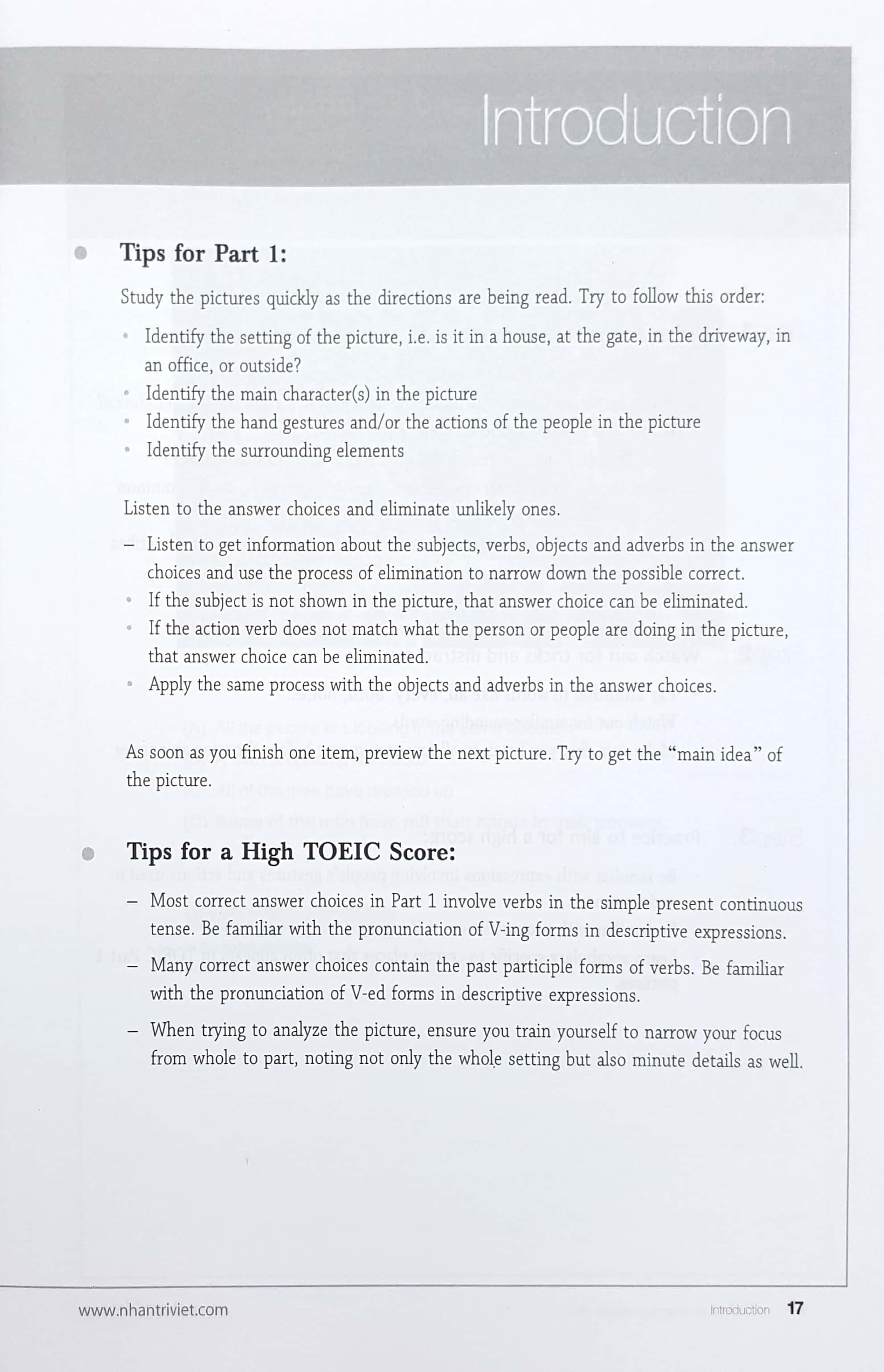 TOEIC Icon L/C Intensive (Cd) The new TOEIC Test was first administered in May, 2006 with tasks redesigned to be “more authentic” and “more closely resemble what a person using the language in the real world would have to do.” According to ETS, the new TOEIC test emphasizes authentic language contexts which require learners to use multiple strategies and abilities to comprehend and connect information. While the number of test items and the basic test format are kept unchanged, several major changes are introduced: a shift from individual questions to sets of questions in Part 3, a replacement of error recognition questions by text completion questions in Part 6, the inclusion of questions based on two interrelated passages in Part 7 and a broader range of accents are used in the Listening section. The reason for all these changes is of course part of the test designers’ commitment to continually re-evaluating and improving the test, but at the same time, a response to some criticism that there is a weak correlation between a high TOEIC score and the real ability to communicate in English. Time will tell whether, and how well, the new TOEIC test can improve the accuracy in measuring the testtakers’ proficiency, but it is clear that the enhancements in the new test do reflect how the language is used in a more authentic setting. It is also clear that the new test will pose new challenges to most testtakers, who have been more or less comfortable with the traditional version of the test for many years. The TOEIC ICON series is designed to help you cope with these new challenges. Beginning with the Basic level (LC and RC), the TOEIC ICON series introduces basic vocabulary and grammar patterns and provides you with extensive practice to acquire them. Through step-to-step lessons, the skills and strategies to effectively handle all parts of the test are at the forefront of the series. The higher level, Intensive level, is intended to give you intensive strategy building and in-depth practice to help you achieve a high score in the new TOEIC test. Whether your target score is an entry level of 400s or a more advanced score of 700-800s, TOEIC ICON series is your ideal choice .