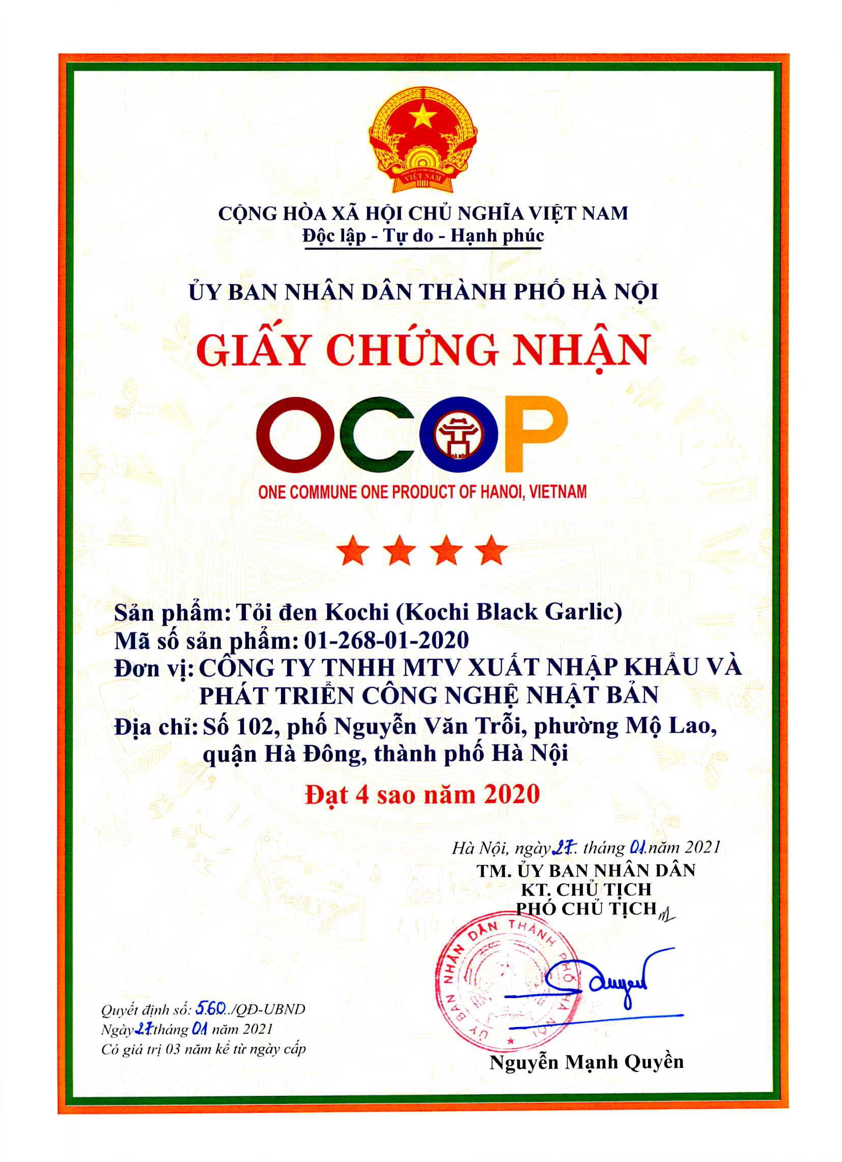 + Chứng nhận OCOP 4 sao.