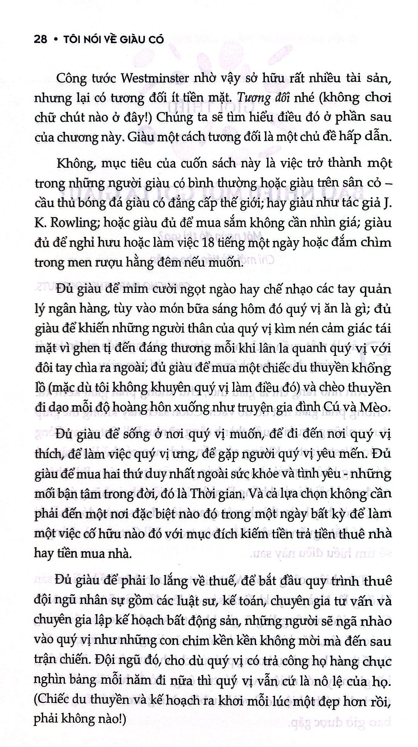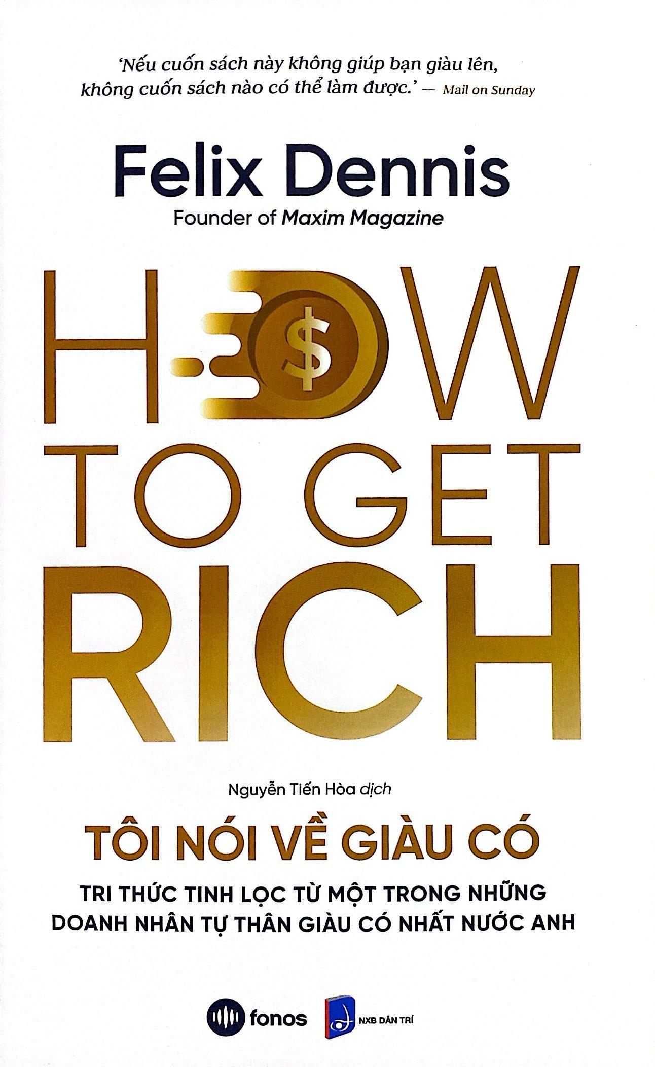 Trong cuốn sách “Tôi nói về giàu có”, Felix Dennis – triệu phú tự thân được The Sunday Times Rich List xếp vào top trong những giàu có nhất nước Anh năm 2013 đã bàn luận về việc làm giàu, nghệ thuật xây dựng doanh nghiệp và tạo ra tài sản. Bạn sẽ không có cơ hội được đọc một cuốn sách làm giàu nào thẳng thắn và hài hước hơn cuốn sách này.