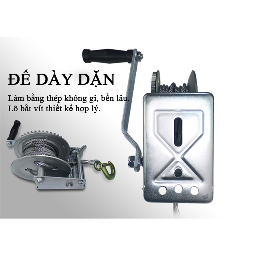 - Tời quay tay 2500LBS hoạt động không phụ thuộc vào nguồn điện nên có thể làm việc trong môi trường khắc nghiệt như tuyết, đầm lầy, sa mạc, bãi biển,...
