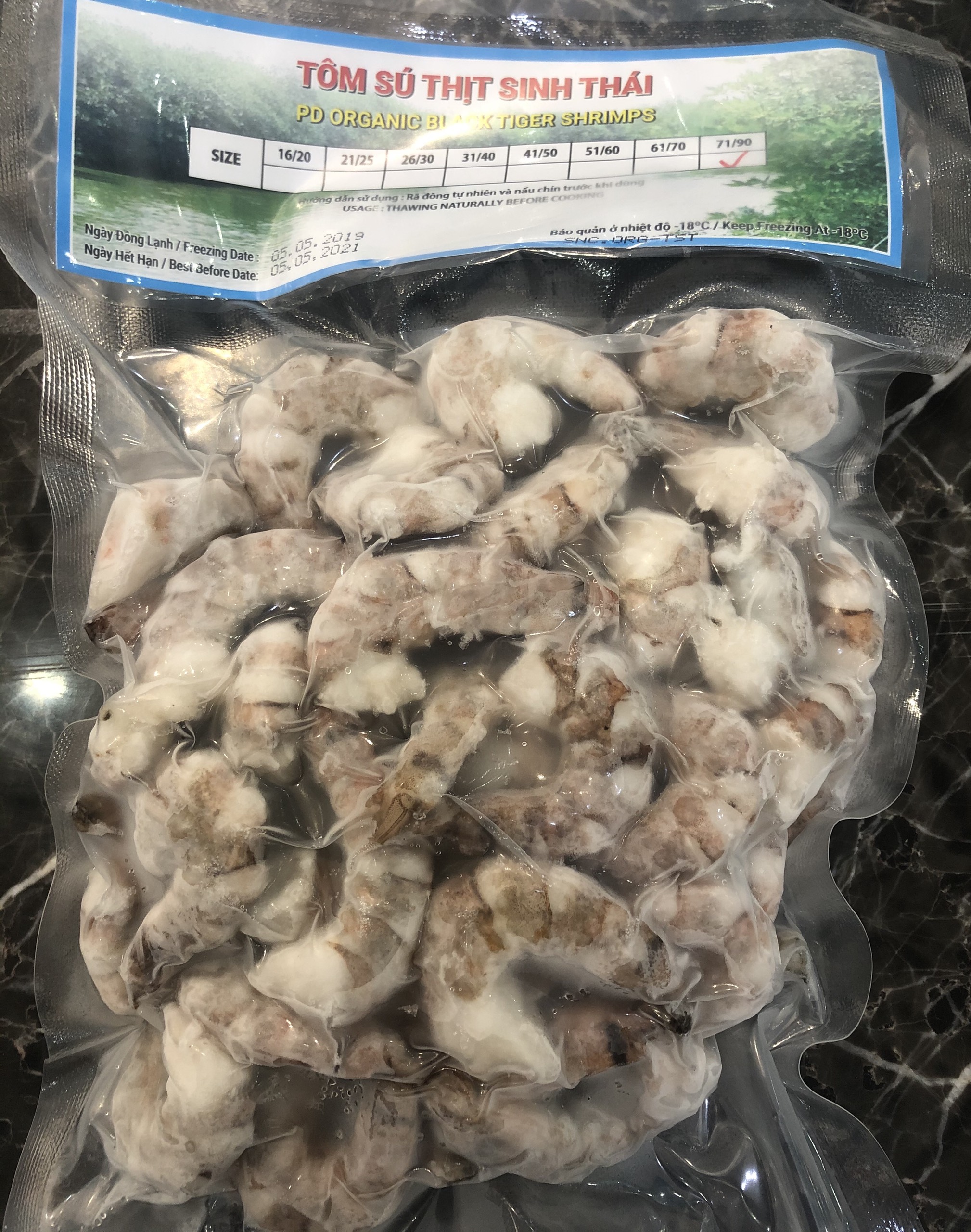 ***Tôm sú thịt sinh thái đông lạnh được đóng túi, cấp đông lúc tươi, tôm khi rã đông đảm bảo vẫn giữ được độ ngon và vị ngọt của tôm.