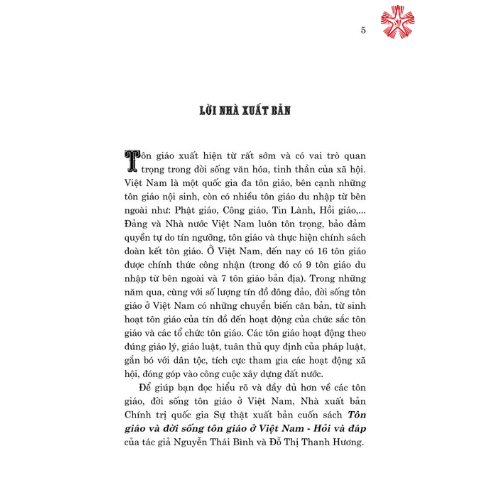 Để giúp bạn đọc hiểu rõ và đầy đủ hơn về các tôn giáo, đời sống tôn giáo ở Việt Nam, Nhà xuất bản Chính trị quốc gia Sự thật xuất bản cuốn sách Tôn giáo và đời sống tôn giáo ở Việt Nam - Hỏi và đáp của tác giả Nguyễn Thái Bình và Đỗ Thị Thanh Hương.