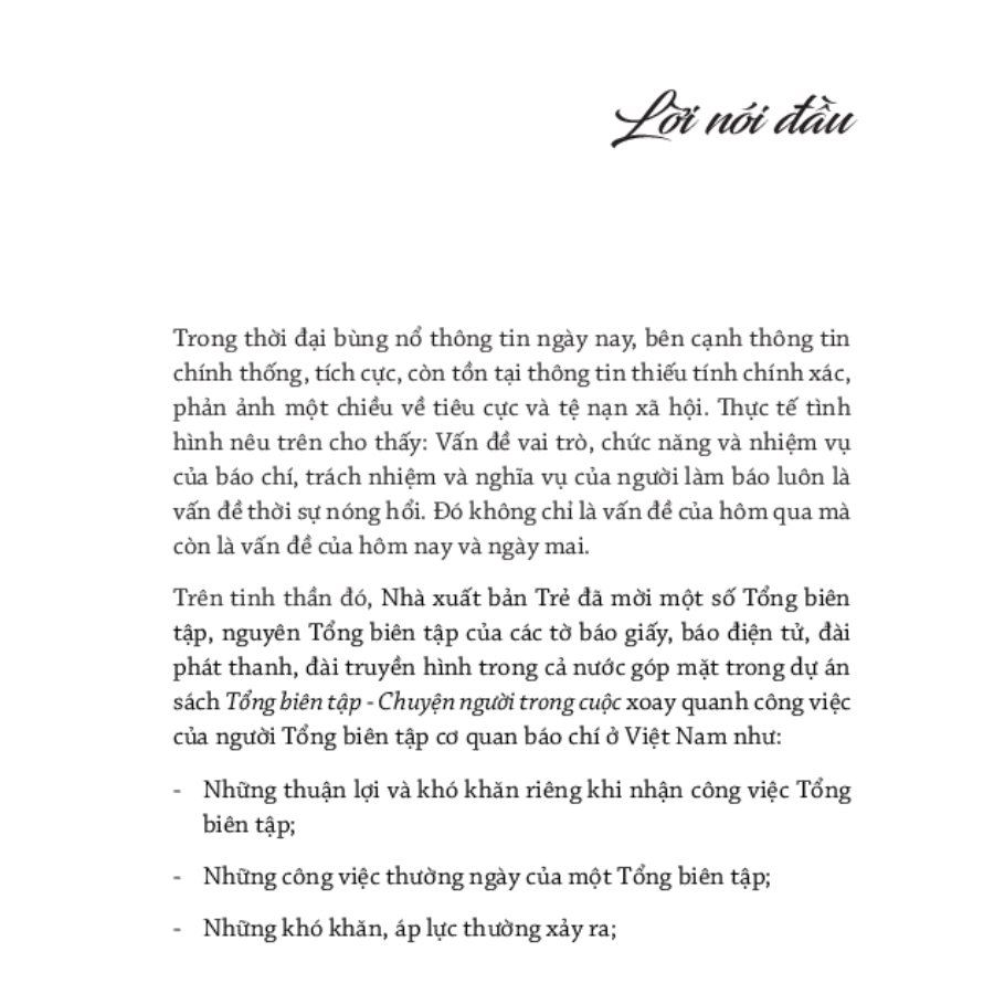Là những trải nghiệm cá nhân góp thêm chất liệu phong phú, đa dạng và không phải ai cũng biết cho những trang sử của nền báo chí Việt Nam hiện đại - giai đoạn từ sau thời kỳ đổi mới đến nay: Đài phát thanh quốc gia đã “đổi mới kép” như thế nào; Tổng bí thư viết báo mà cũng có người can ngăn ra sao; có bạn đọc một tờ báo đã chung tay góp giấy cho chính tờ báo mà mình đang đọc; và cuộc đấu tranh cởi bỏ rào cản cơ chế quản lý tài chính cho ngành truyền hình diễn ra thế nào… Rồi, kênh truyền hình nào đã tạo nên cú hích cho nền công nghiệp quảng cáo nước ta; chuyện một Tổng biên tập đã cúi đầu nhận lỗi trước đảng bộ và chính quyền địa phương về nội dung một bài báo; chuyện kỳ thi người đẹp đầu tiên sau khi nước nhà thống nhất và cuộc luận tội kích động lối sống tư sản; những ghi chép về sự chuẩn bị và ra đời của những tờ báo điện tử Việt Nam thời đại kỹ thuật số, và đã từng có một lớp học đào tạo ngắn hạn các Tổng biên tập cơ quan báo chí được tổ chức tại Việt Nam…