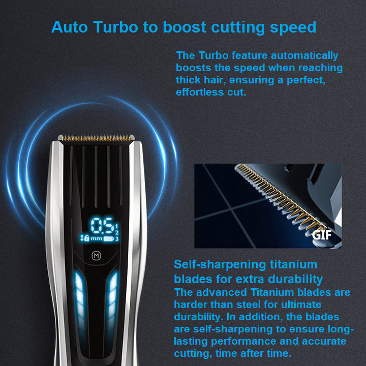 - Công nghệ Auto Turbo của tông đơ sẽ tự động tăng nhanh sức mạnh của động cơ, đảm bảo cắt hoàn hảo, không tốn nhiều công sức.