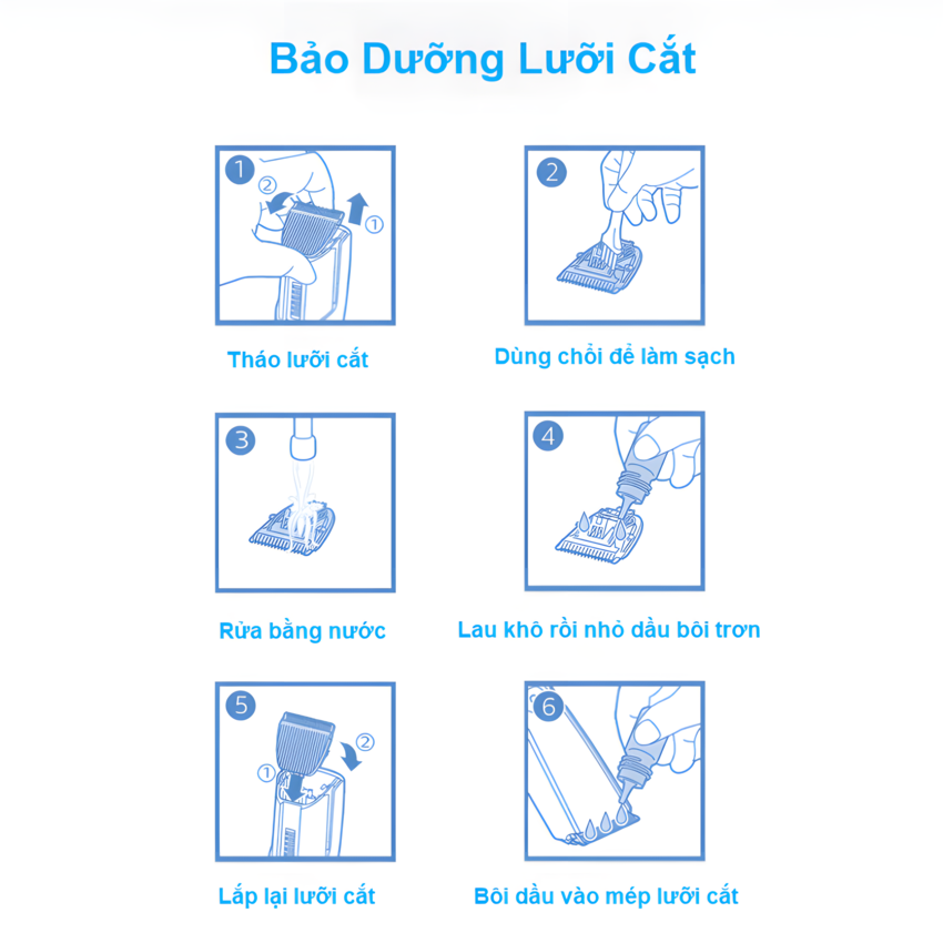 - Lưỡi dao bằng thép không gỉ, tự mài bén, đảm bảo tuổi thọ lâu dài và hiệu quả cắt sắc nét Thiết kế đầu bo tròn, bảo vệ da đầu