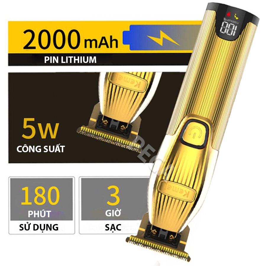 Tông đơ chấn viền không dây màn hình LCD chuyên nghiệp Kemei KM - 1948 full inox Hai màu VÀNG - TRẮNG sang trọng tiện lợi lựa chọn - Tông đơ cắt tóc Kemei 1948