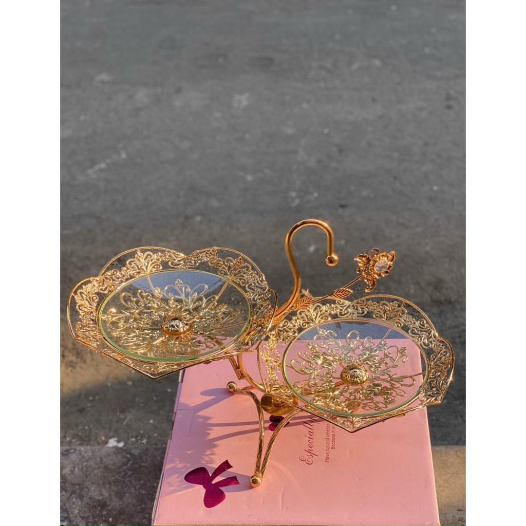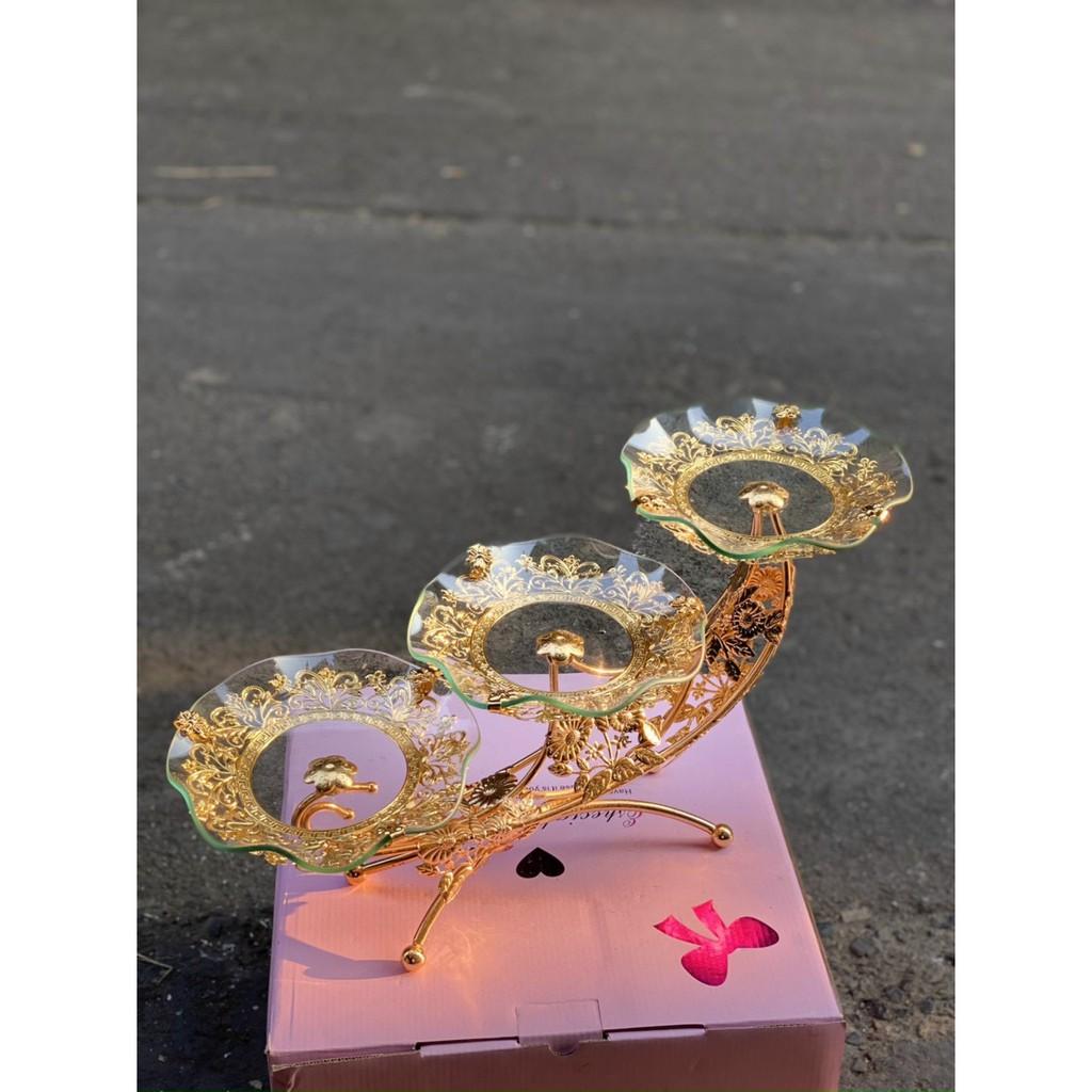 ✨Tổng hợp Đĩa Thủy Tinh Khảm Hoàng Gia Cao Cấp | KỆ THỦY TINH 2 - 3 TẦNG KHUNG HỢP KIM CAO CẤP TRẮNG VÀNG HÌNH THỰC TẾ