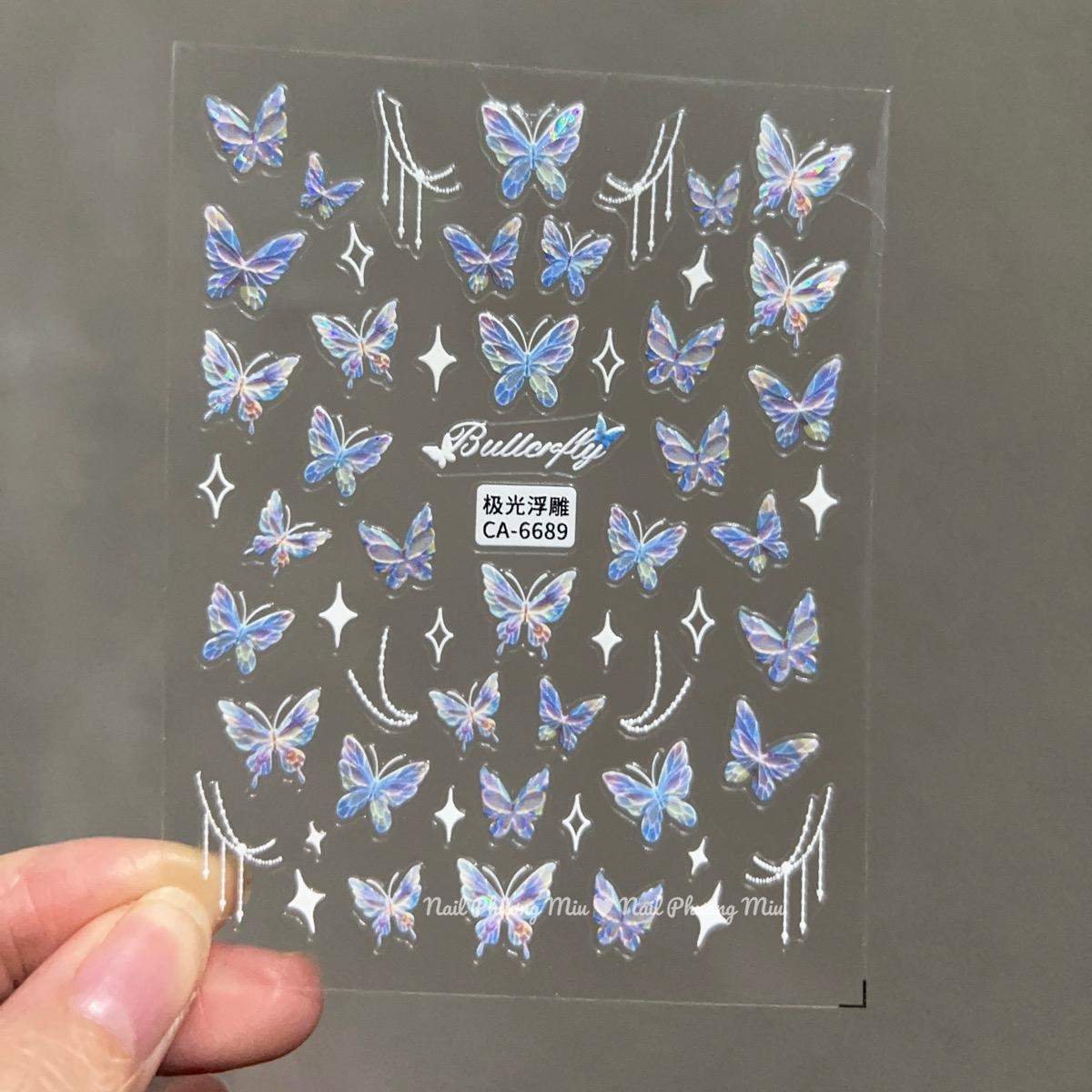 Sticker 5D Bướm Lụa Nổi Gắn Móng CA6993 Làm Nail, Miếng Dán Bướm Lụa 5D Nhiều Màu Trang Trí Hình Dán Móng Hàn Quốc Hiệu ứng 5D sống động: Miếng dán bướm lụa 5D với