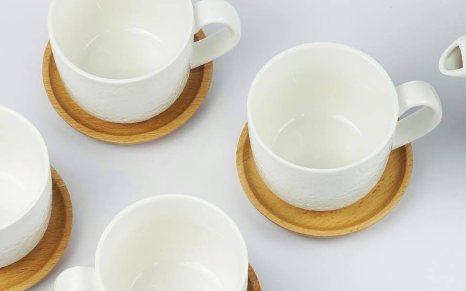 TRÀ VIỆT Bộ Quà Tặng Bộ Ấm Sứ Trắng Bách Niên Kingsize Mô tả sản phẩm: Bộ Ấm Trà Bách Niên sở hữu thiết kế hiện đại, sang trọng: -Dung tích ấm: 1,5 lít cùng 4 tách 300ml, đi kèm khay gỗ riêng cho từng tách trà và ấm. -Chất liệu sứ cao cấp được tạo hình mặt men da bưởi, kết hợp gỗ cao su tự nhiên, mang đến độ bền bỉ và tính thẩm mỹ cao.