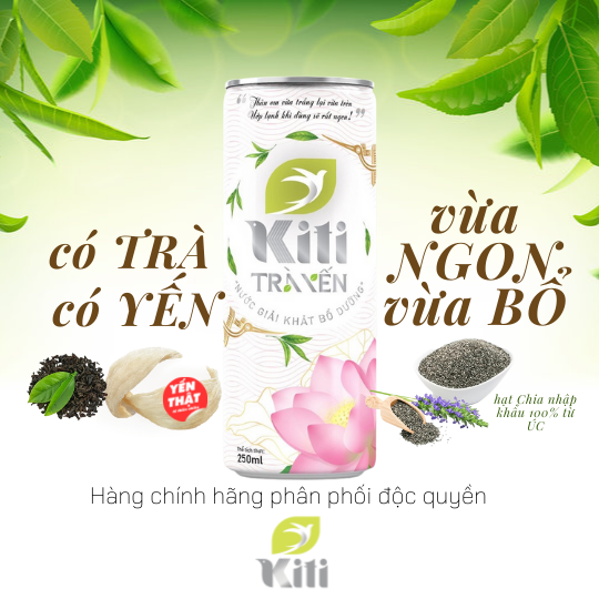 TRÀ YẾN KITI là sản phẩm nước giải khát bổ dưỡng với sự kết hợp các dưỡng chất thảo mộc 100% từ thiên nhiên kết hợp cùng 18 loại dưỡng chất quý giá có