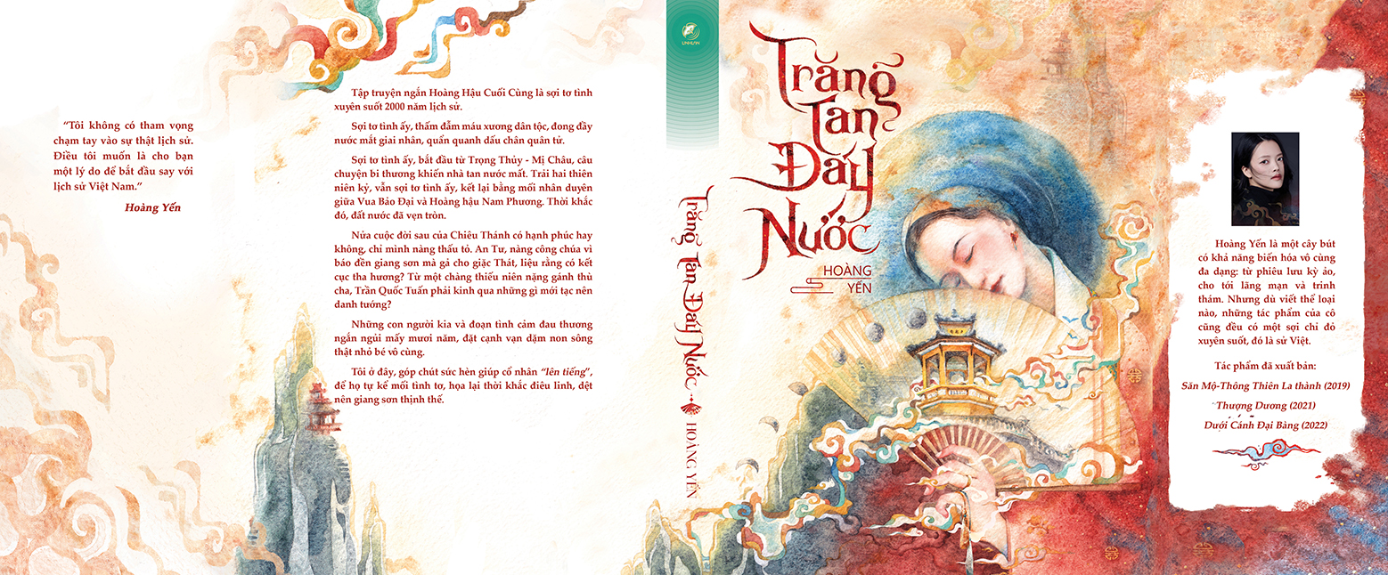 “Trăng tan đáy nước” là tập truyện ngắn lãng mạn được hư cấu dựa trên lịch sử. Từ câu chuyện Trọng Thủy Mị Châu, câu chuyện bi thương khiến nhà tan nước mất, cho tới mối nhân duyên giữa Vua Bảo Đại và Hoàng hậu Nam Phương. Sợi tơ tình đã xuyên suốt 2000 năm lịch sử, thấm đẫm máu xương dân tộc, đong đầy nước mắt giai nhân, quẩn quanh dấu chân quân tử.