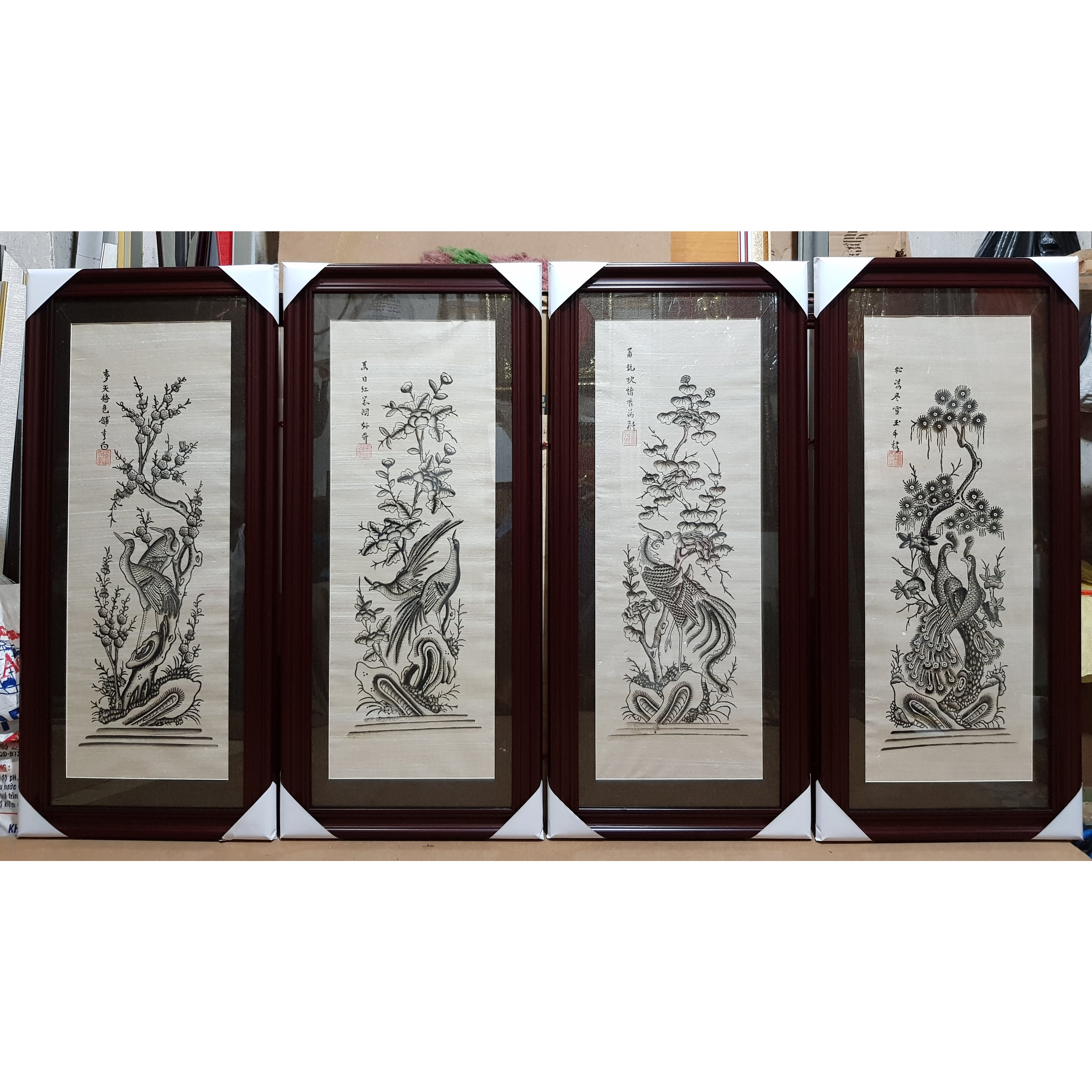 Tranh thêu tứ quý tùng cúc trúc mai - tứ bình - tranh thêu tay tphcm