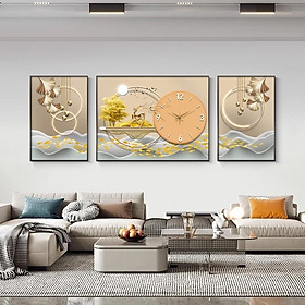 Bộ 3 Bức Tranh Tráng Gương Hươu Tài Lộc Khung Nhôm Hệ Cao Cấp Lh:0987665761#art#minart