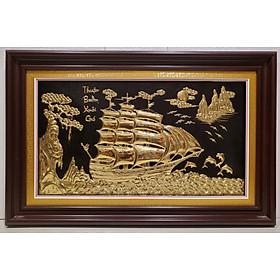 Tranh Đồng Thuận Buồm Xuôi Gió Nền Đen Dát Vàng | Xưởng Đồng Đông Sơn