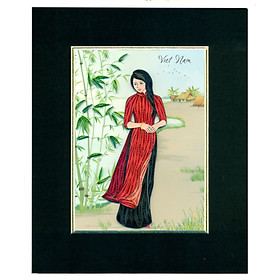 ✨Tranh Giấy Xoắn Nghệ Thuật size 20x25cm - Cô Gái Bên Tà Áo Dài Đỏ.