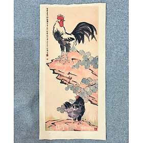 Tranh in màu trên giấy dó truyền thống Việt Nam, tái hiện những bức tranh chủ đề Gà Trống xuất sắc nhất của hoạ sĩ nổi tiếng Từ Bi Hồng (Xu Bei Hong).