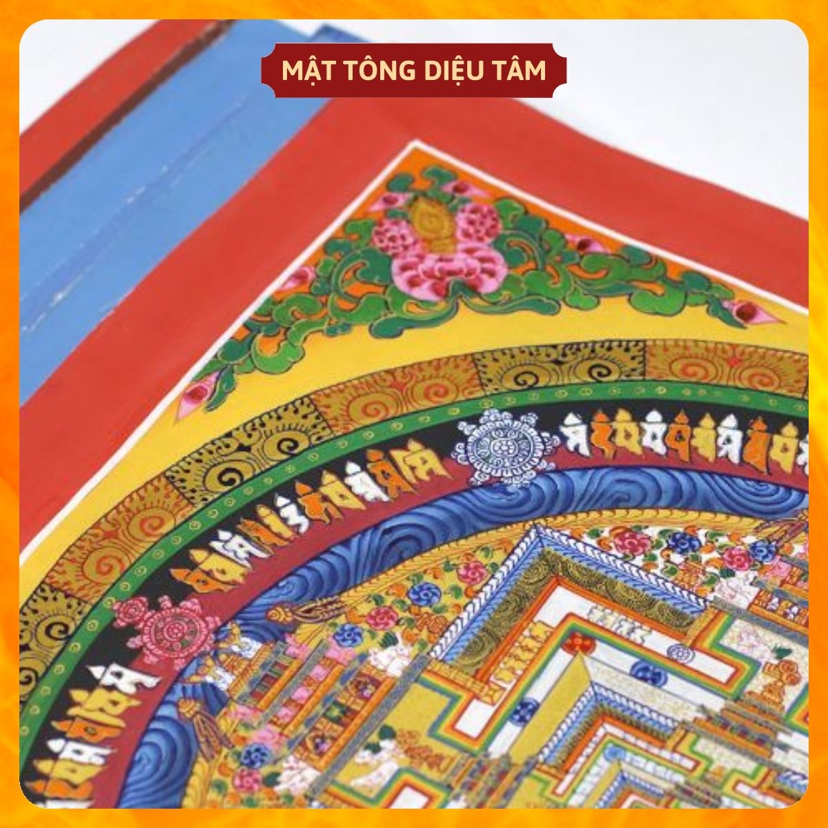 Được vẽ tay bởi các Họa sư, Lama ở vùng đất đầy năng lượng tâm linh Nepal, Mandala với tâm vô số câu tâm chú Om Mani Padme Hum của Đức Quan Âm Bồ Tát giúp mang lại năng lượng an bình, hạnh phúc, phát triển tâm linh.