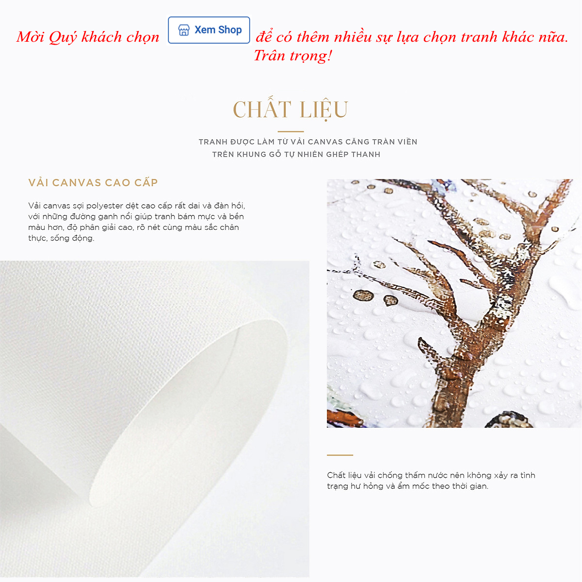 Tranh in trên vải canvas hội họa Kích thước: 80x60cm Tấm lưng bằng gỗ HDF lõi xanh nhập khẩu. Khung vật liệu composite. Không bị ảnh hưởng bởi nước, ẩm mốc. Tặng kèm đinh 3