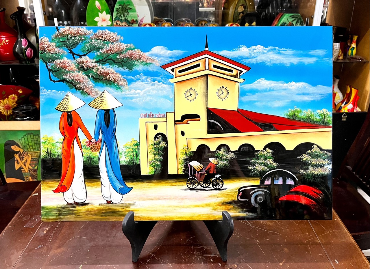 ✨Tranh sơn mài - CHỢ BẾN THÀNH VIỆT NAM / Biểu tượng văn hóa Sài Gòn – Quà tặng ý nghĩa