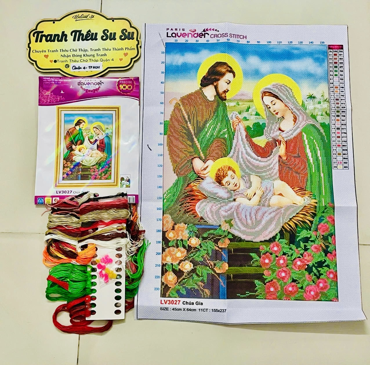 ✨Tranh thêu chữ thập Gia đình chúa lv3027, kích thước 45 x 64 cm
