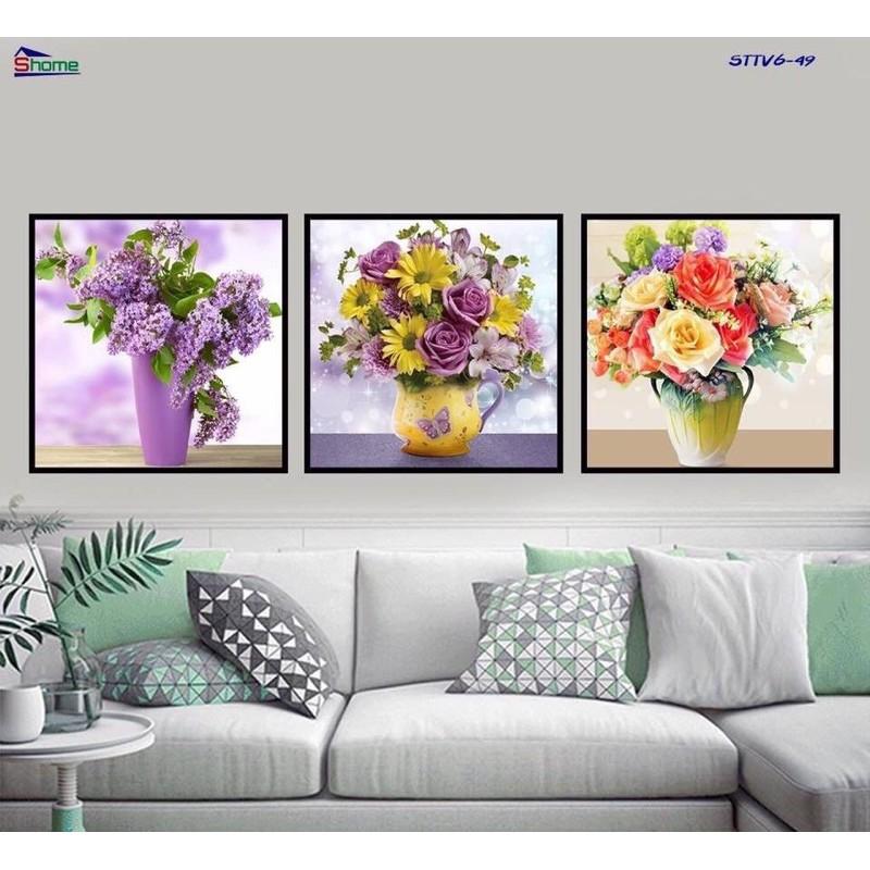 Review bộ tranh tráng gương Lọ Hoa 3 tấm tại Tường Xinh TG183