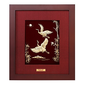 • Sản Phẩm: Tranh Vàng 24K PRIMA ART - ĐÔI HẠC VÀ CÀNH TRE - Kích thước 25 x 29 cm - CGS-0466-14