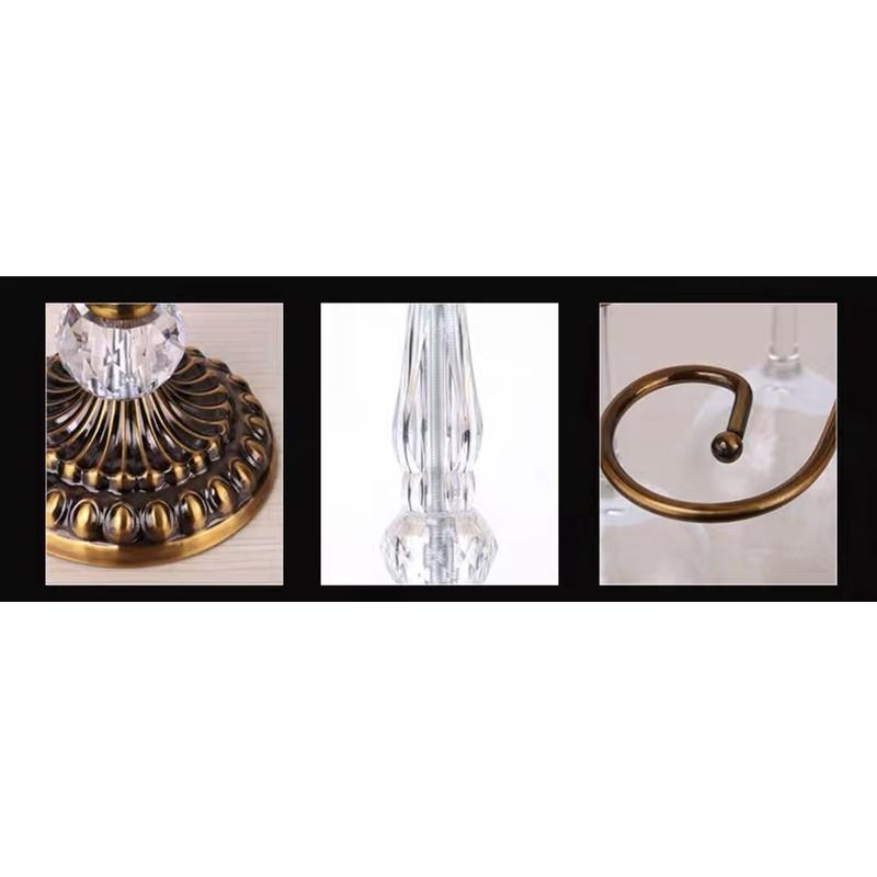 Giá treo 6 ly rượu vang kèm kệ đỡ chai phong cách Châu Âu màu đồng cổ điển. Kệ để ly thiết kế phong cách decor quý tộc sang trọng và quý phái.