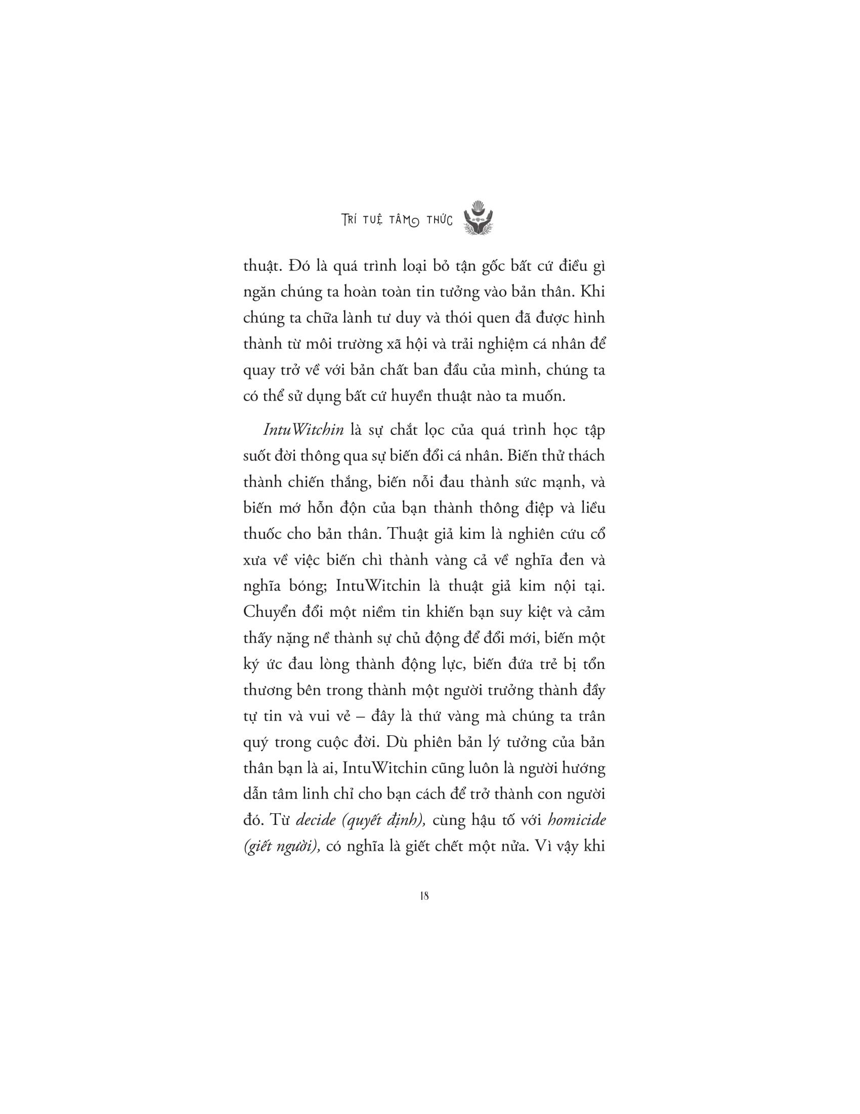 Cuộc sống hối hả và bận rộn khiến con người chúng ta có xu hướng dùng lý trí để điều khiển mọi hành vi và quyết định. Điều này vô hình khiến chúng ta bị tổn thương cả về thể chất lẫn tinh thần và cảm xúc. Chúng ta đã quên rằng sâu thẳm bên trong chúng ta là trực giác có sức mạnh vô biên, thứ có thể khiến chúng ta mở rộng thế giới quan và biết đâu mới là con đường đúng đắn. Trực giác có thể biến bạn thành người thầy, người hướng dẫn, người chữa lành và người hùng trong câu chuyện của chính bạn.