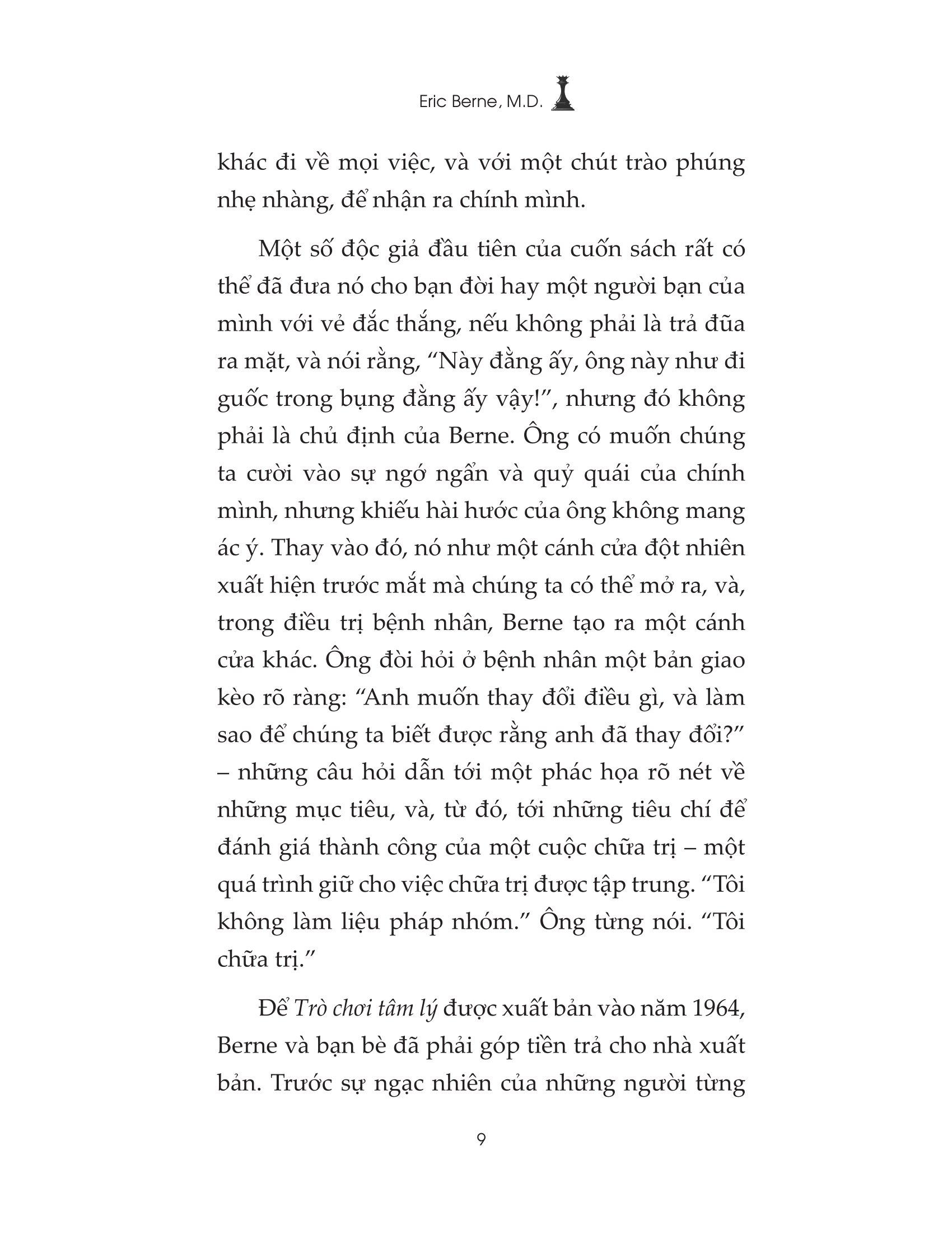 “Trò chơi tâm lý” là một cuốn sách kinh điển về hành vi của con người, giải thích những trò chơi tâm lý hoang dã và thú vị mà bạn và mọi người xung quanh bạn chơi để thao túng lẫn nhau đồng thời cũng đưa ra các cách chế ngự bản ngã của m.ình để bạn có thể ngừng chơi với những mối quan hệ độc hại và tận hưởng những mối quan hệ lành mạnh hơn.
