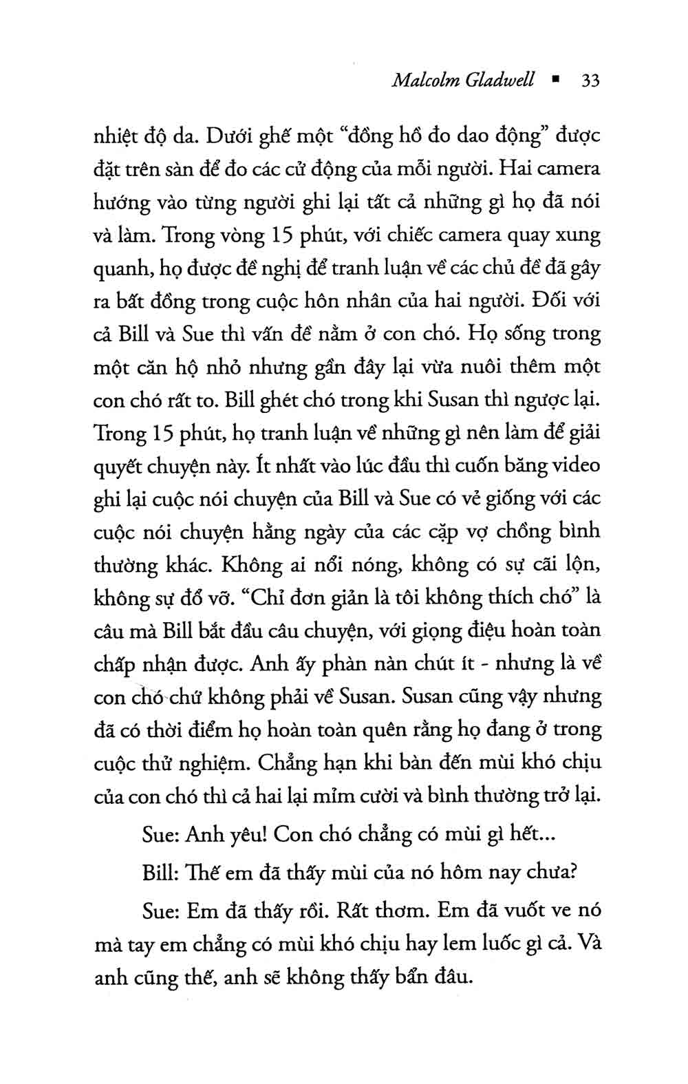 Ngay phần giới thiệu, Malcolm Gladwell đã đưa ra một tình huống đặc biệt. Một bức tượng cổ đã được cả một hội đồng khoa học gồm rất nhiều chuyên gia hàng đầu của một bảo tàng ở Mỹ khẳng định chắc chắn là thật nhưng cuối cùng được phát hiện là đồ giả mạo. Không phải bằng các thiết bị tối tân mà chỉ bằng một thoáng nhìn kéo dài 2 giây của một số chuyên gia khi họ có dịp thăm bảo tàng. Như vậy chỉ cần 2 giây, họ có thể nắm rõ được bản chất bên trong của bức tượng hơn cả một đội ngũ chuyên gia của bảo tàng đã nghiên cứu bức tượng trong 14 tháng.