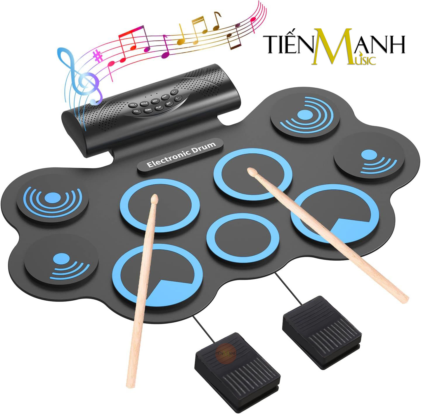 - Pin sạc, hỗ trợ Bluetooth để chơi trên app (đi kèm trống, có hướng dẫn tiếng việt), và phát nhạc lên trống.