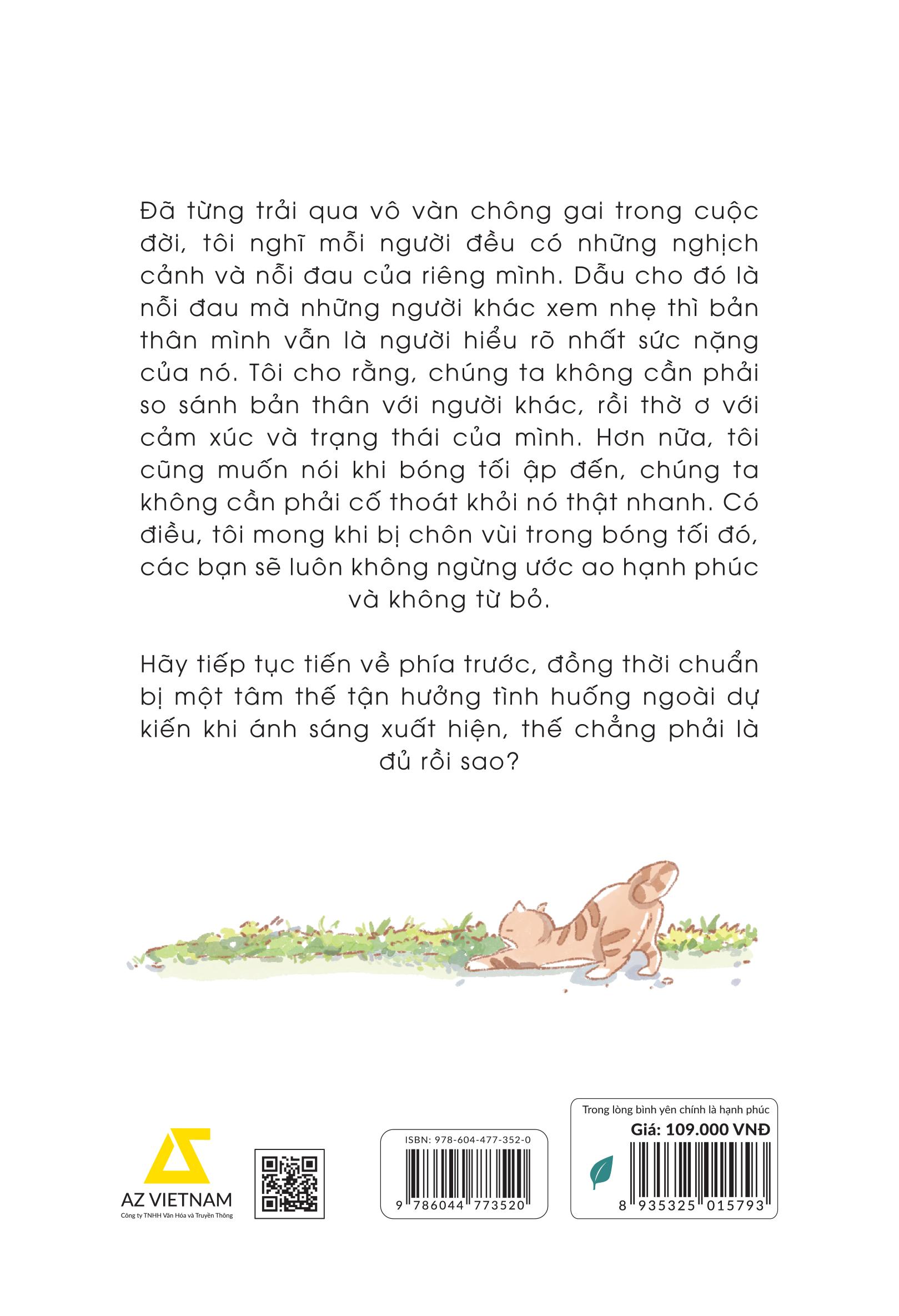 Đã từng trải qua vô vàn chông gai trong cuộc đời, tôi nghĩ mỗi người đều có những nghịch cảnh và nỗi đau của riêng m.ình. Dẫu cho đó là nỗi đau mà những người khác xem nhẹ thì bản thân m.ình vẫn là người hiểu rõ nhất sức nặng của nó. Tôi cho rằng, chúng ta không cần phải so sánh bản thân với người khác, rồi thờ ơ với cảm xúc và trạng thái của m.ình. Hơn nữa, tôi cũng muốn nói khi bóng tối ập đến, chúng ta không cần phải cố thoát khỏi nó thật nhanh. Có điều, tôi mong khi bị chôn vùi trong bóng tối đó, các bạn sẽ luôn không ngừng ước ao hạnh phúc và không từ bỏ.