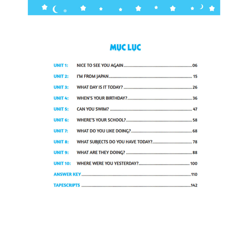 Trọng tâm ngữ pháp Tiếng Anh 4 tập 1: Unit 1 – Unit 10