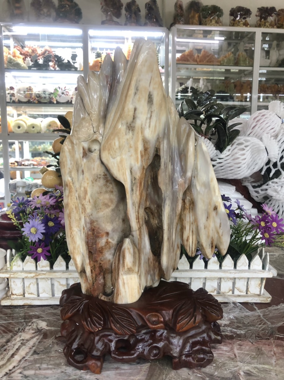 Chất liệu: Đá thạch anh kích thước: Dài 55 cm x Rộng 15 cm x Cao 50 cm Khối lượng: 6,2 kg