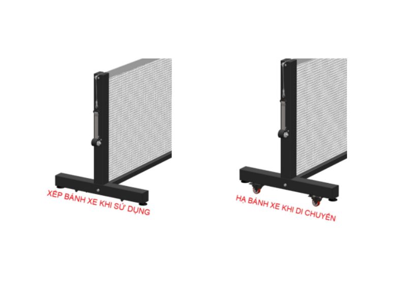 Đặc biệt trụ Pickleball thi đấu 303704-P còn được thiết kế thêm bộ 4 bánh xe kèm chốt an toàn giúp bạn dễ dàng di chuyển trụ đến mọi vị trí tập luyện mong muốn. Bạn chỉ cần gấp gọn bánh xe và cố định trụ bằng hệ thống mút chân không cân bằng, cố định chắc chắn chống rung lắc mang đến trải nghiệm đánh bóng ổn định tuyệt vời.