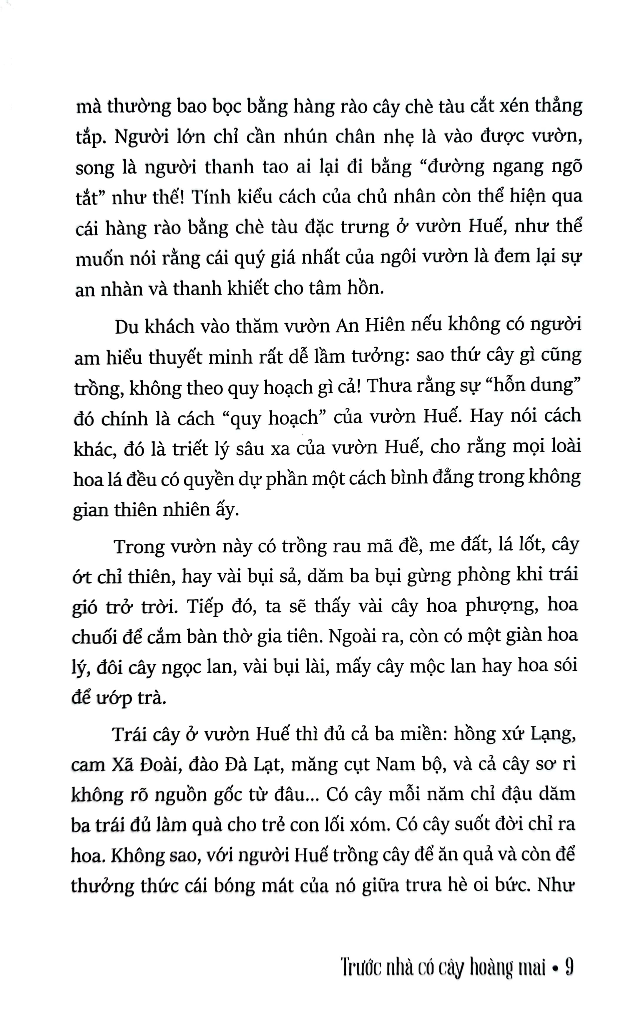 Nhà văn Vĩnh Quyền nói: “Trước nhà có cây hoàng mai của Minh Tự mang dấu ấn một thời sống bên ngoài Huế và cách nhìn - nghĩ của nghề báo, làm nên sự khác biệt với những tác giả viết về Huế – khúc ruột của m.ình – bằng tinh thần cực đoan đáng yêu kiểu ‘không nơi nào có được’ hoặc ‘chẳng thể nào đổi khác’.”